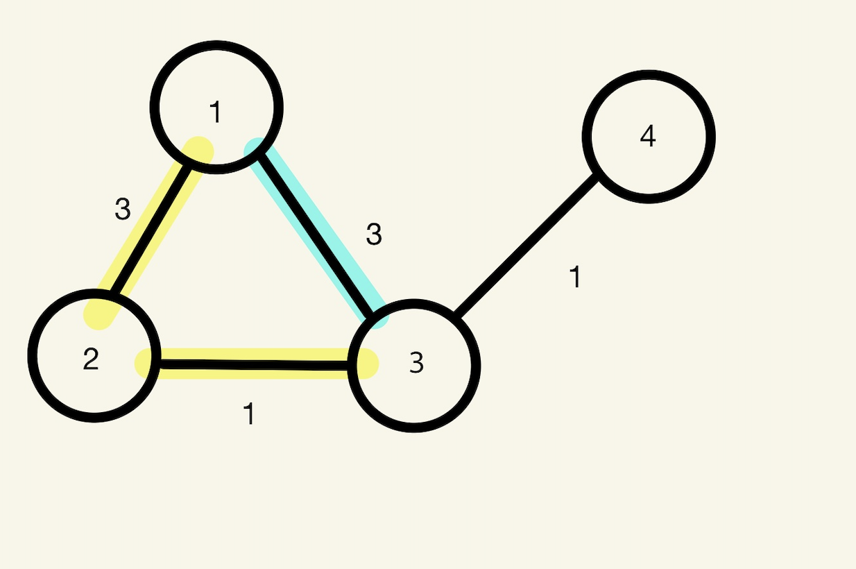 1번노드에서 3번노드로 가는 최단 경로를 고려 해 볼 경우