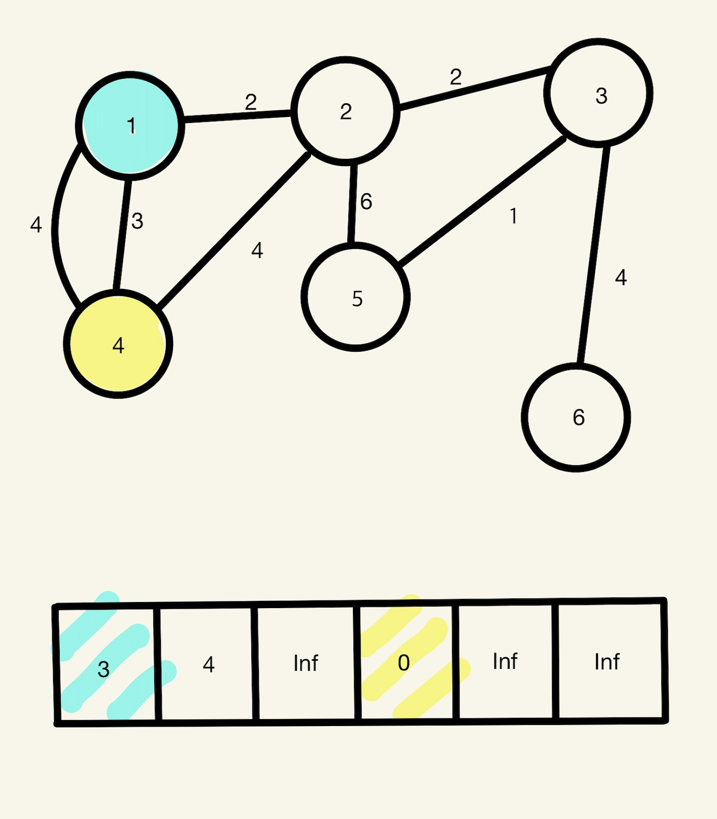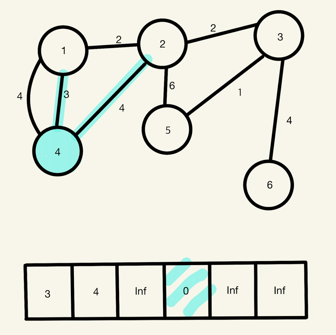 4번 노드에서 6번 노드로 가는 최단 경로를 찾아보자